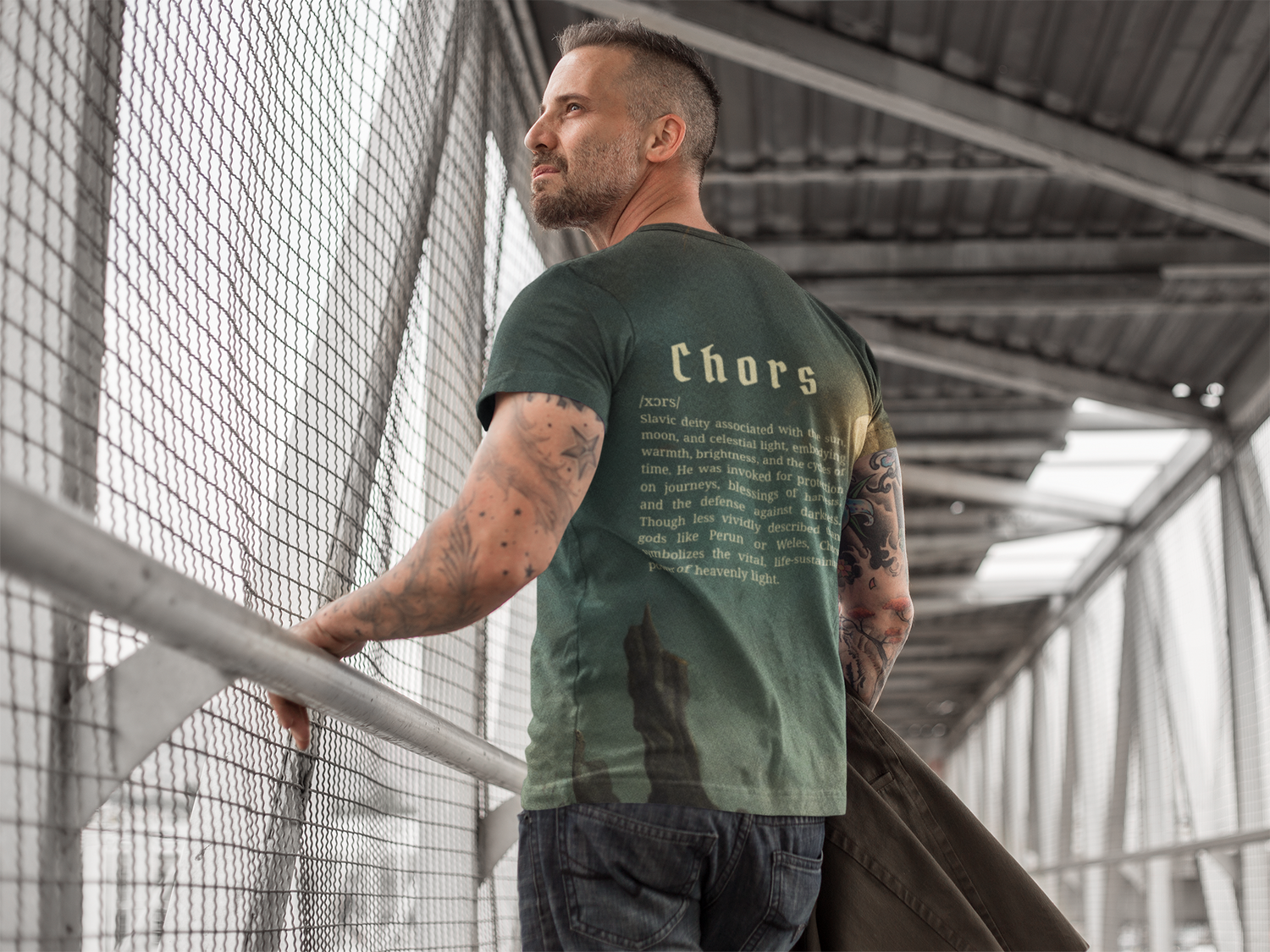 Chors Slavic God T-Shirt – Men’s All-Over Print Mythology Tee with Bestiary Back Design